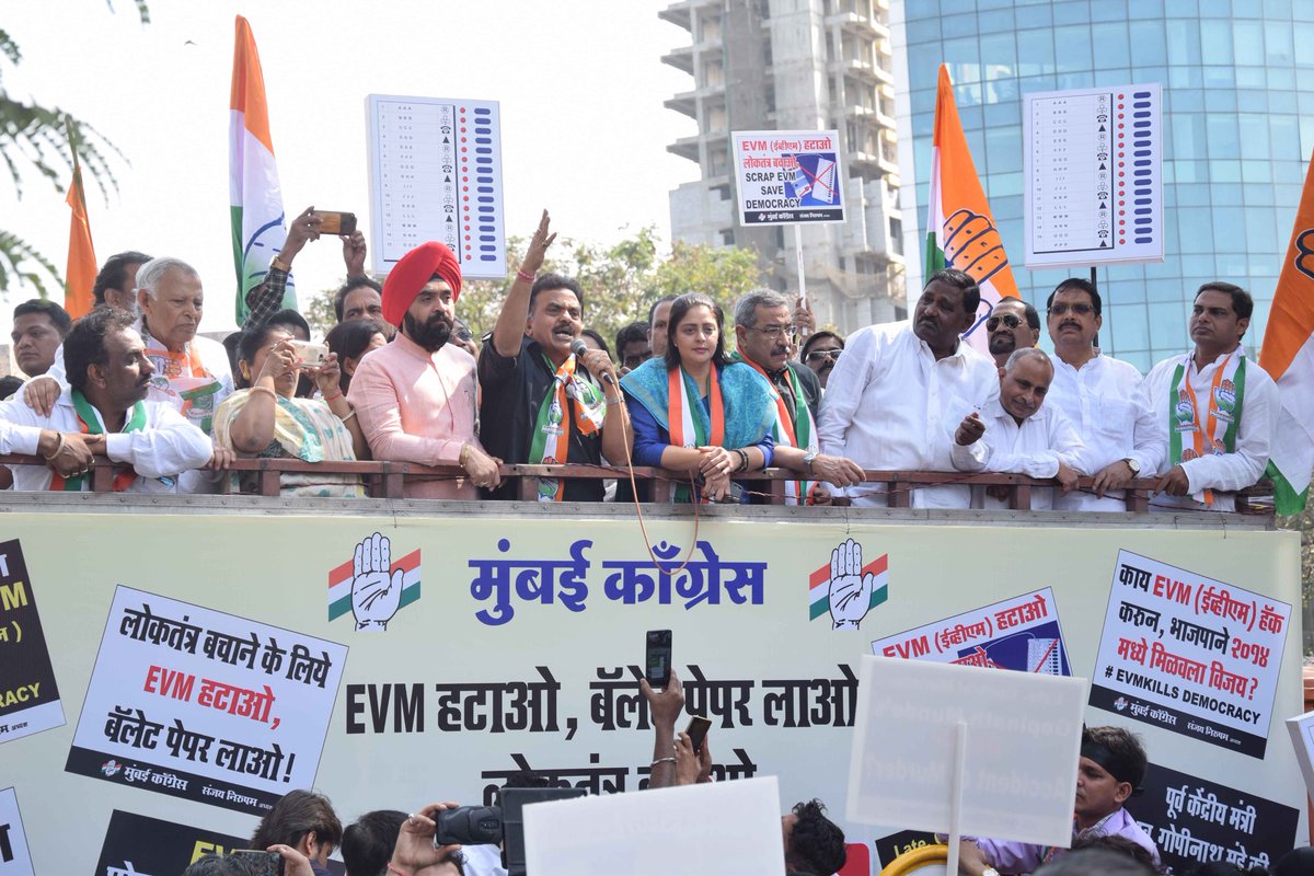 Sanjay Nirupam leads a protest to demand the use of ballot paper and scrapping of EVM machines in the upcoming polls.